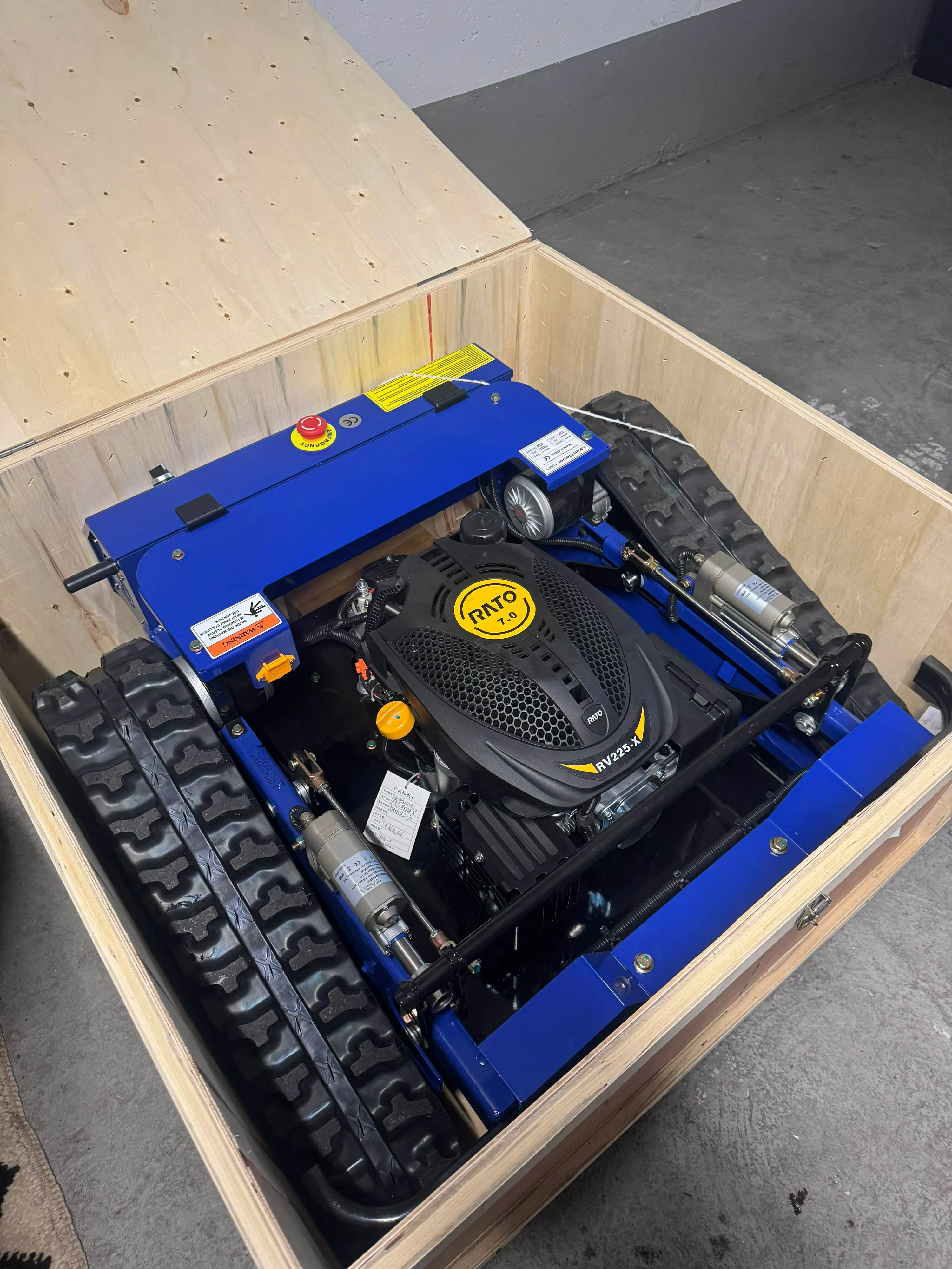 You need strong power for tough weeds and steep hills. The deepkron r55 has a 9-horsepower gasoline engine. It gives steady power for thick brush and tall grass. The r55 lawn mower uses strong tracks and sits low to the ground. This helps it grip hills and stay steady. You can mow on slopes up to 45 degrees. The remote control lawn mower works well on rough ground and steep hills. It is great for hard-to-mow places.